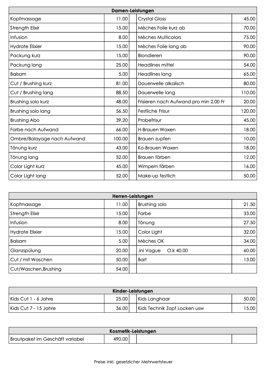 Beinhaltet das Styling und Make-up der Braut inkl. Probetermin Fr. 490.00