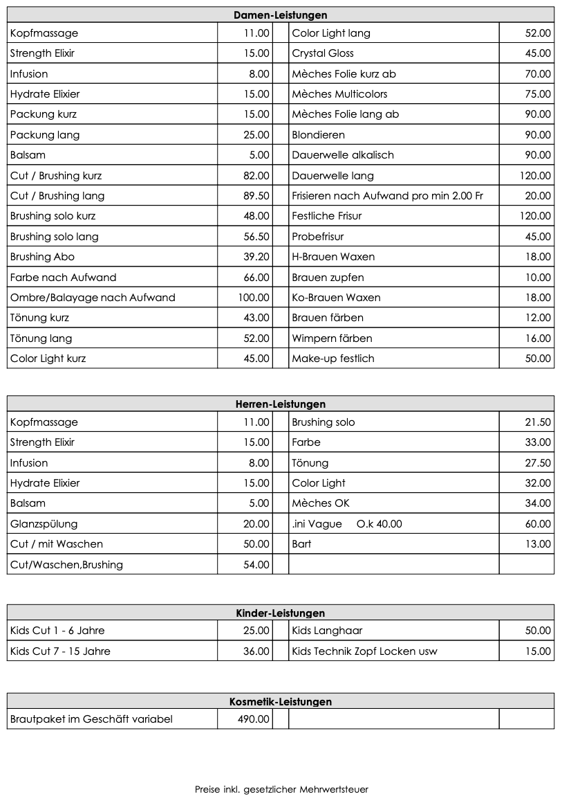 Preisliste 2026